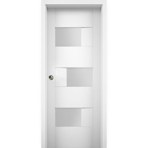 Sliding Pocket Door 18 X 84 Inches With Opaque Glass Sete 6933 White Silk Kit Rail Hardware Mdf Interior Bedroom Modern Doors Walmart Com