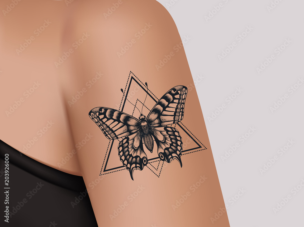 Tattoo On Female Shoulder Mystic Butterfly Tattoo Template Of Banner For Tattoo Parlor Stock Vektorgrafik Adobe Stock